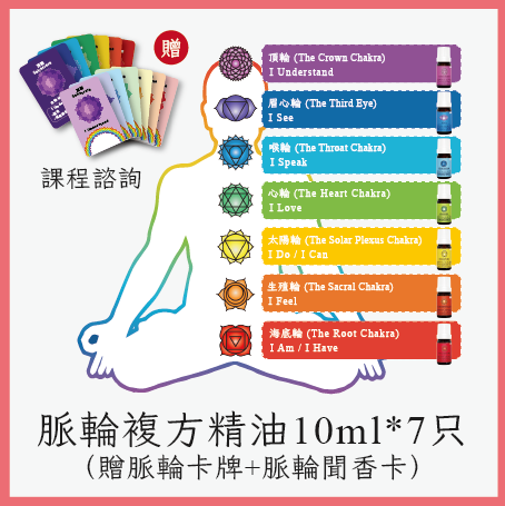 脈輪複方精油10ml*7只套組(含脈輪卡牌1組+脈輪聞香卡1組)